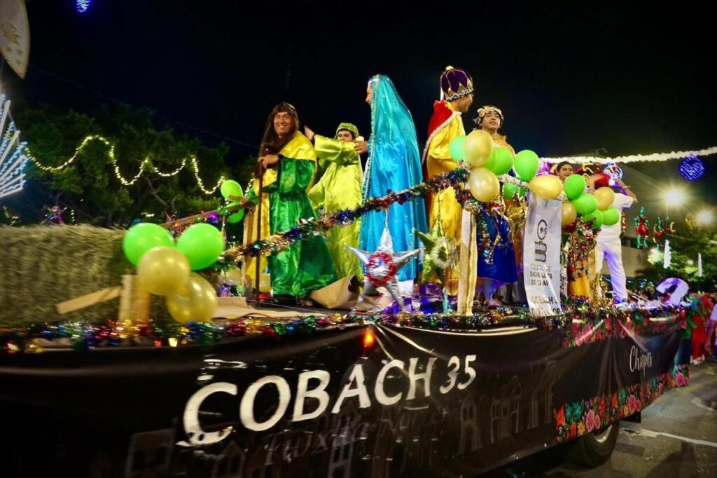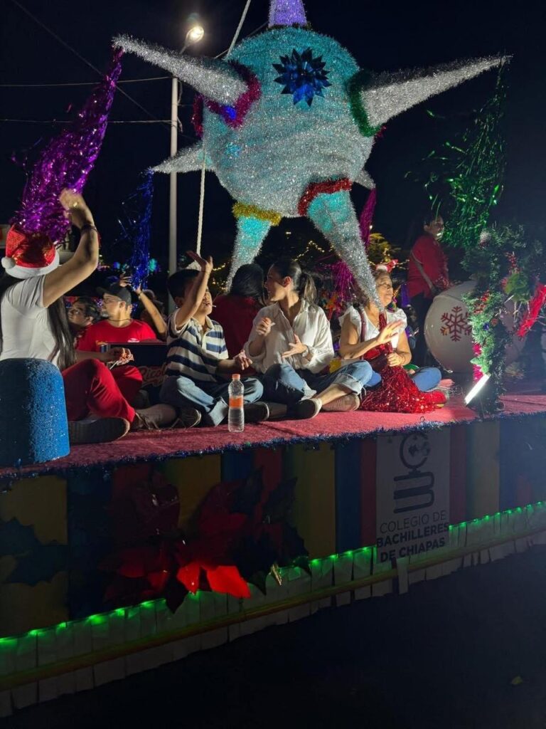 Tuxtla Gutiérrez, Chiapas; 15 de diciembre de 2025.– Con entusiasmo, orgullo y espíritu solidario, estudiantes del plantel 35 Tuxtla Norte del Colegio de Bachilleres de Chiapas (COBACH) participaron en la Caravana Navideña ChiapaNavidad 2025, encabezada por la directora general del subsistema, Viridiana Figueroa García, en compañía de la líder juvenil Yaz Ramírez.