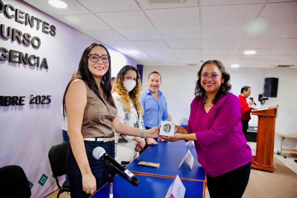 Tuxtla Gutiérrez, Chiapas; 18 de diciembre 2025.– La directora general del Colegio de Bachilleres de Chiapas (Cobach), Viridiana Figueroa García, junto con Katia Moreno Hernández, directora de la International Youth Foundation en México, encabezó la entrega de equipo tecnológico a planteles y docentes destacados que concluyeron el curso Fundamentos de Inteligencia Artificial.