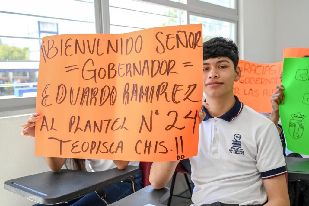 En el marco del fortalecimiento de la infraestructura educativa, el gobernador Eduardo Ramírez, la directora general del Colegio de Bachilleres de Chiapas (Cobach); Viridiana Figueroa García y el director del Inifech; Carlos Idelfonso Jiménez Trujillo, encabezaron el acto inaugural de dos aulas didácticas y obra exterior en el plantel 24 Teopisca de la Coordinación de Zona Altos.