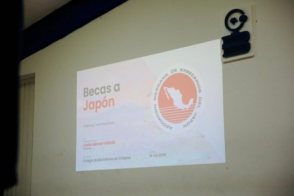 Tuxtla Gutiérrez, Chiapas; 19 de marzo de 2026.- Como parte de las acciones de vinculación académica que realiza el Colegio de Bachilleres de Chiapas (Cobach), se realizó una plática informativa de becas en Japón, por la Asociación Mexicana de Exbecarios del Japón A.C. (AMEC), impartida por Carlos Méndez Galindo a estudiantes del plantel 13 Tuxtla Oriente, en donde se compartió la información sobre los procesos, beneficios y alcances de estos apoyos educativos.