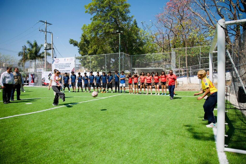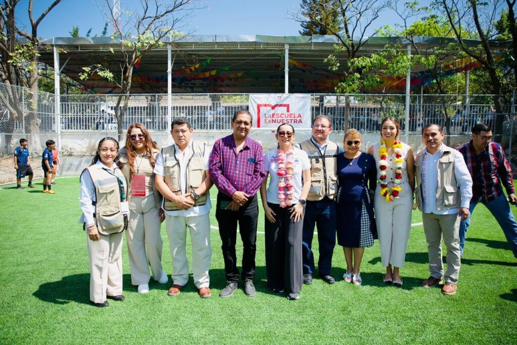 Entre las acciones realizadas están: la construcción de baños múltiples, una cancha de futbol 7 con pasto sintético, tribunas techadas con bancas, enmallado perimetral con puerta de acceso, así como la instalación de luminarias, obras que contribuyen a brindar entornos más seguros, dignos y funcionales para la comunidad estudiantil.