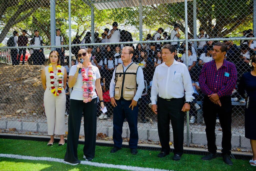 En el acto inaugural, la directora general, Viridiana Figueroa García, estuvo acompañada por José Luis González Lara, director del plantel; Juan Enrique Farrera Esponda, director regional de la Secretaría del Bienestar; así como por integrantes del comité de madres y padres de familia y otras autoridades, con quienes realizó el corte de listón.