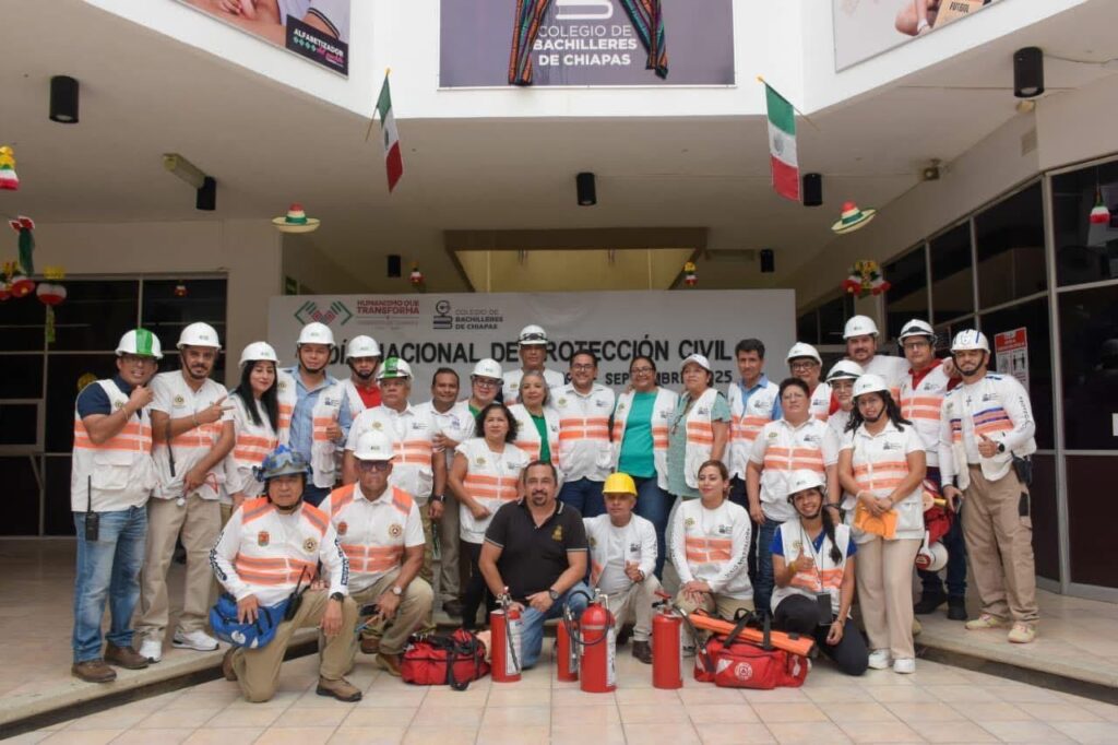 Tuxtla Gutiérrez, Chiapas; 19 de septiembre de 2025.- En el marco del Día Nacional de la Protección Civil, más de 85 mil personas que conforman la comunidad educativa del Colegio de Bachilleres de Chiapas (Cobach) entre estudiantes, directivos, personal docente y administrativo de los 338 centros educativos, Oficinas Centrales, coordinaciones de zona y el Planetario de Tapachula, participaron este viernes en el Simulacro Nacional 2025 realizado de forma simultánea en todo el país a convocatoria del gobierno federal.